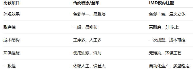 由此可见,IMD技术正在逐步取代传统表面处理工艺,成为外观件制造的主流方向。